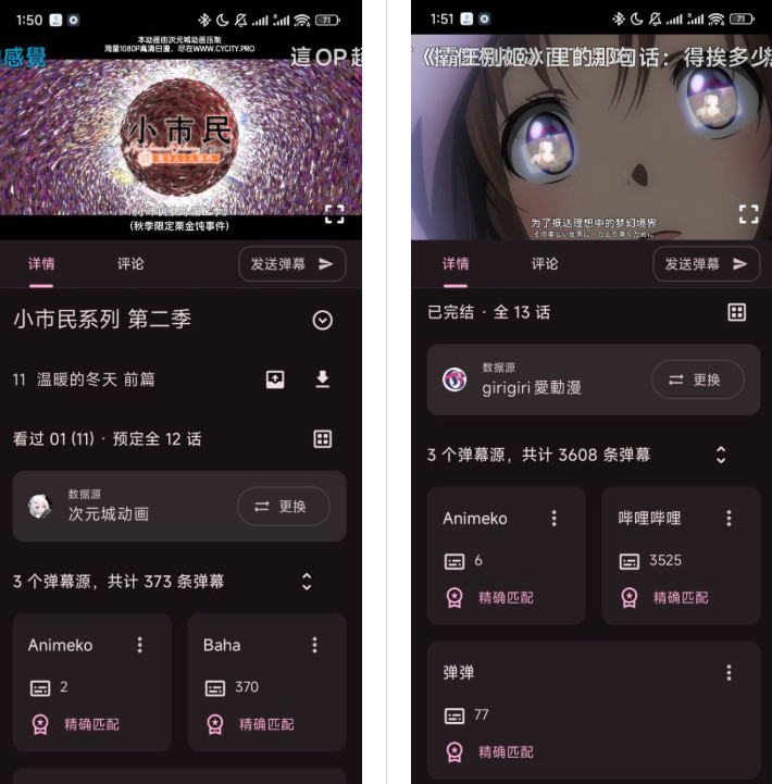 -聚合全网弹幕源(弹弹play),以及 Animeko 自己的弹幕服务。
