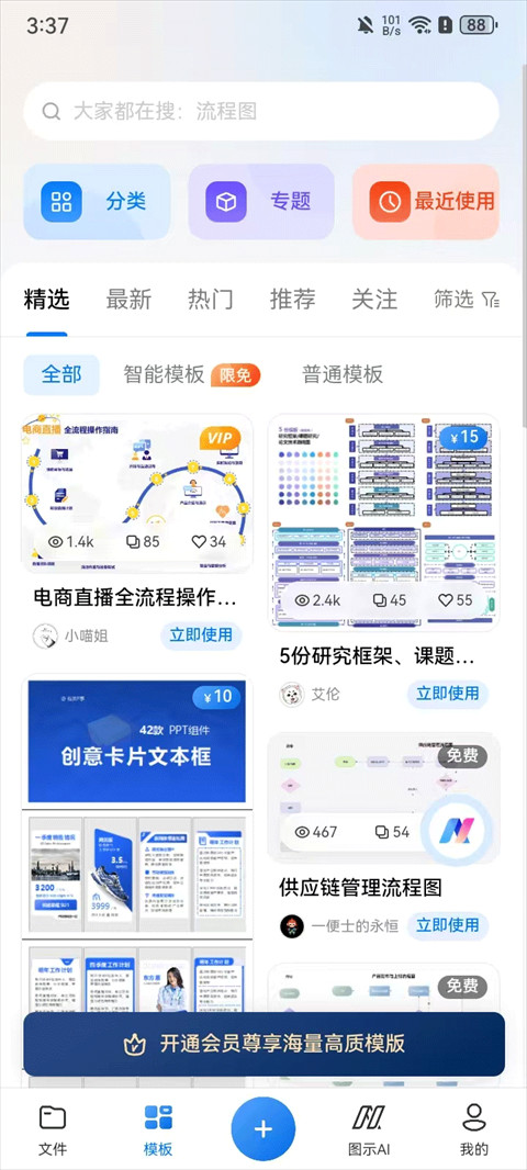 4、海量模板:7万+模板一键使用,满足办公日常所需流程图、组织架构图、思维导图、图文排版;