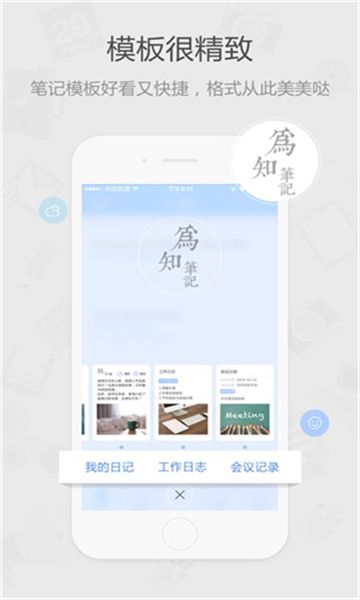 1、为知笔记手机版支持文字、拍照、录音和手指画等多种记录方式。