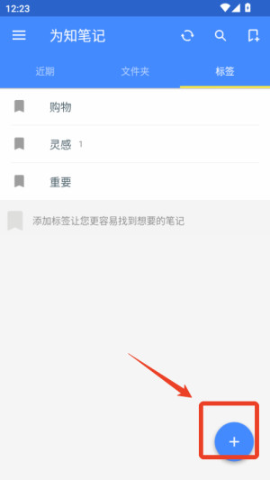 1、打开为知笔记手机版,点击新建按钮,可以选择写文字、拍照片或录语音,用你喜欢的方式快速记录当下想法。