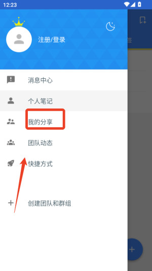 1、在为知笔记手机版中点击已经创建好的“群组”右下角有一个齿轮的按钮;点击之后就会进入到设置的界面中。