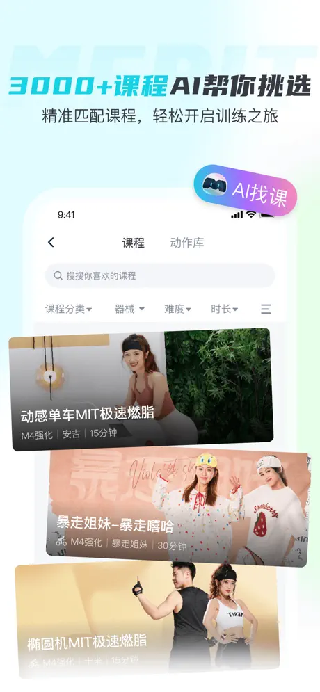 MERIT超燃脂明星教练每日骑行、跑步、划行、瑜伽等直播课程。