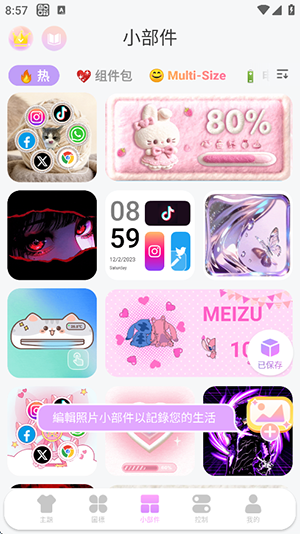 方法1:先在主页上选择您喜欢的小部件,并将您喜欢的大小保存到我的小部件库中。
