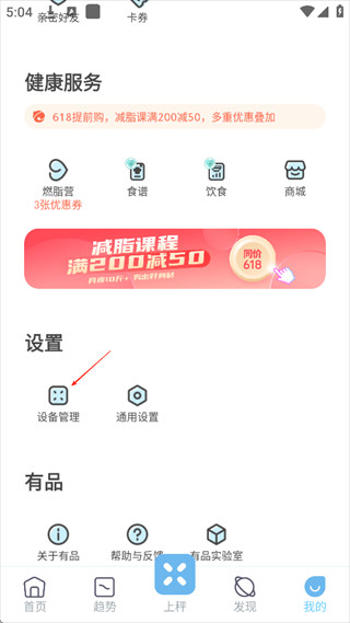 1、进入picooc体脂秤软件的设置页面,点击“设备管理”。