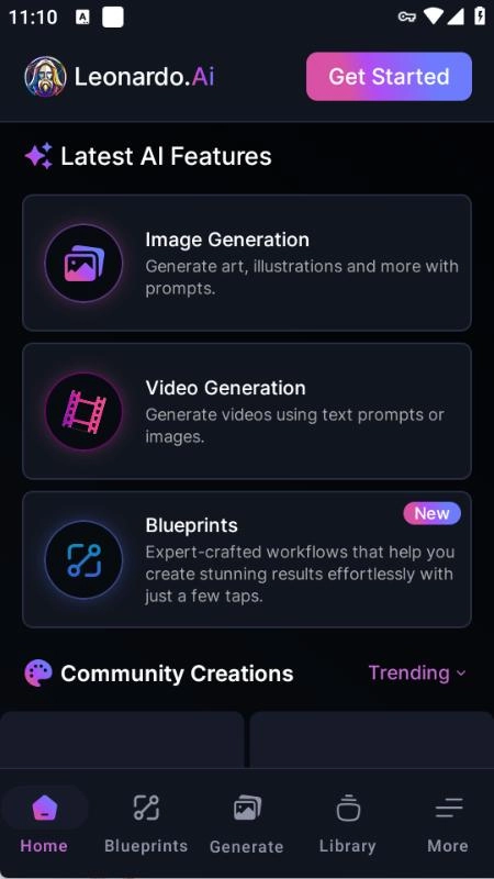 leonardoai手机版内置多种创作模板和参考资源,用户在没有明确构图时可以先借助现成内容找方向,再进一步调整成更贴近需求的结果。
