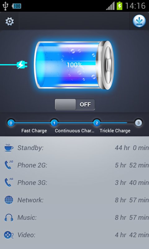 4、超级省电是一个全天候保护电池的软件。它呈现卓越的服务,一键完成电池检测,知道剩余电量可以用多久。