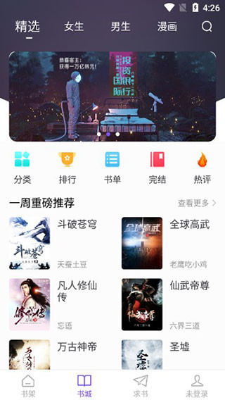 1、漫客阅读器纯净版每日上线第一时间要查看您的各类分类,得到大量信息资源,方便后续软件体验哦。