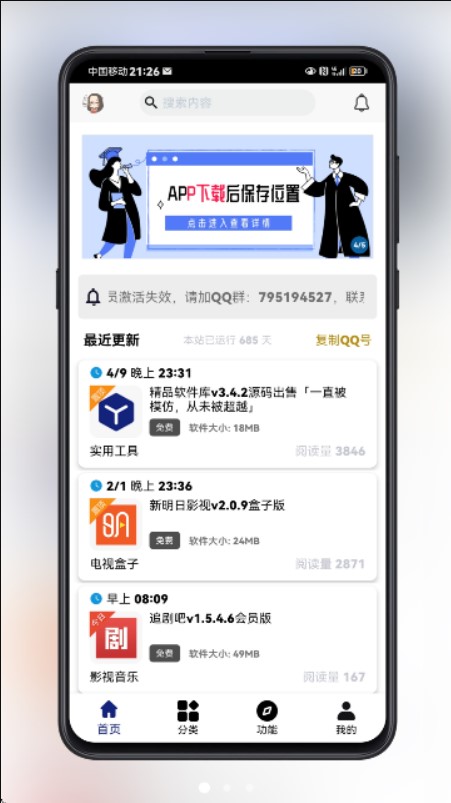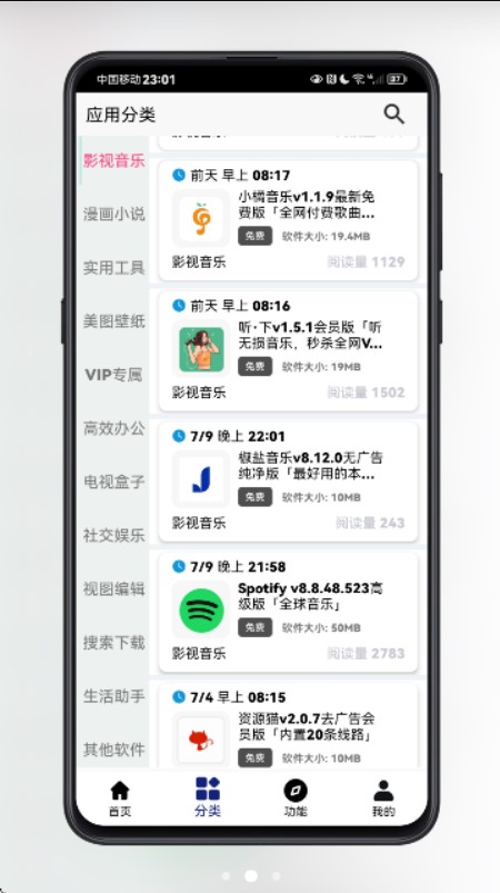 2.详细分类:酷酷软件库软件按照类型进行了详细分类,如影视、动漫、漫画、小说、电视点播等,便于用户快速定位所需资源。