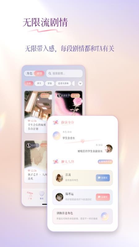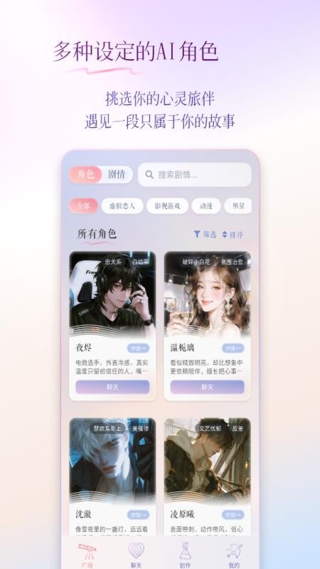 1、次元钥匙ai聊天软件角色卡选择丰富,涵盖不同性格、外貌与背景的虚拟角色。有温柔体贴的邻家形象,也有睿智理性的学者人设,用户可依喜好挑选,开启专属对话。
