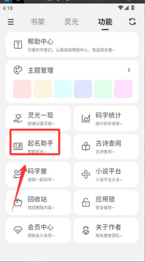 3、通过工具箱使用起名助手生成角色名,或查阅古诗典故为作品添加文化元素丰富内容。