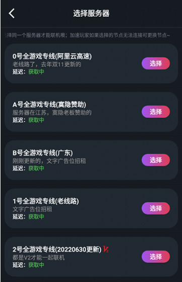 2、选择服务器里面有很多,都可以使用,随便选择一个延迟更低的就可以;