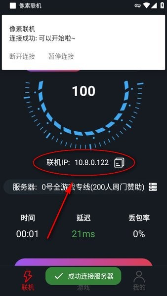 5、提示联机成功以后,就可以复制联机IP,发送给要一起联机玩的好友;