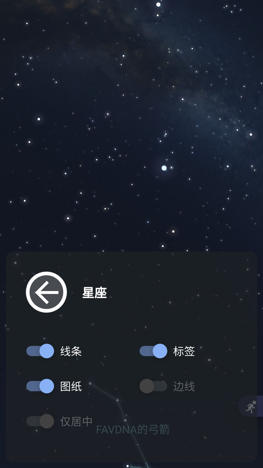 5、长按星座按钮可选择星座的标签与图纸,可更好的观测到各星座