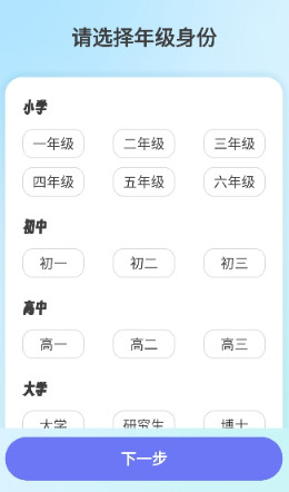 1、下载极光写作软件后打开选择自己的年级身份。