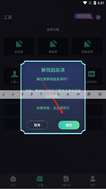 4、点击需要解锁的画质选项,在弹出的窗口中确定。