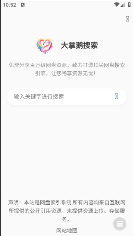 1、打开大掌鹅搜索,在首页的搜索框中输入您想要查找的资源名称或关键词。