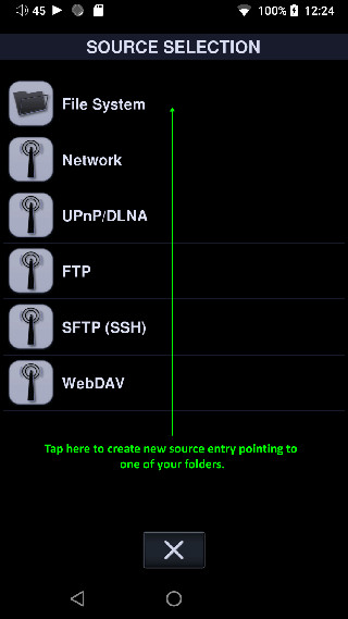 1、通过Neutron播放器的设置 -> 媒体库或 Sources 访问 Source Selection,然后使用 [+] 打开 Sources Selection。点击文件系统。