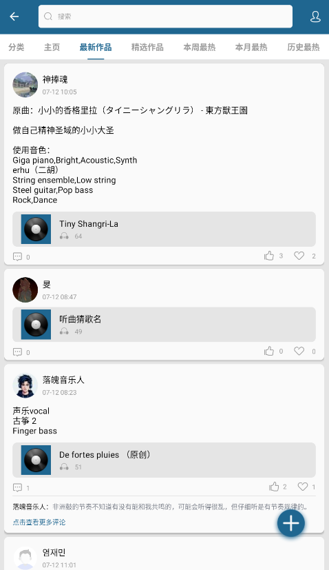 除了即时演奏之外,应用也支持多音轨录音与内容叠加,用户可以先录下一段旋律,再继续补入其他乐器内容,让原本零散的片段慢慢拼成更完整的音乐结构,创作过程也更顺一些。