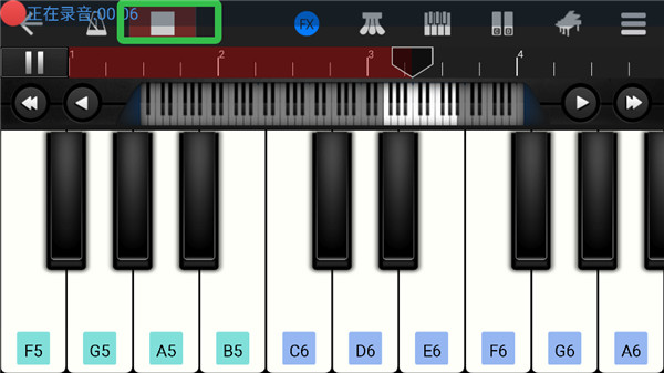 4、这里显示“正在录音”字样的时候,你就能够直接开始演奏音乐了。