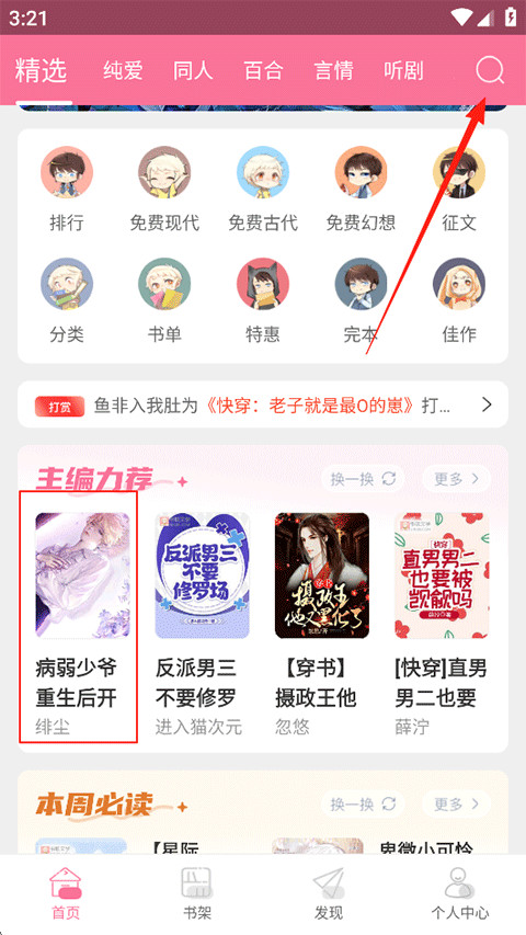 1、打开书耽小说,在搜索栏搜索您想要阅读的小说或者在下方分类筛选;