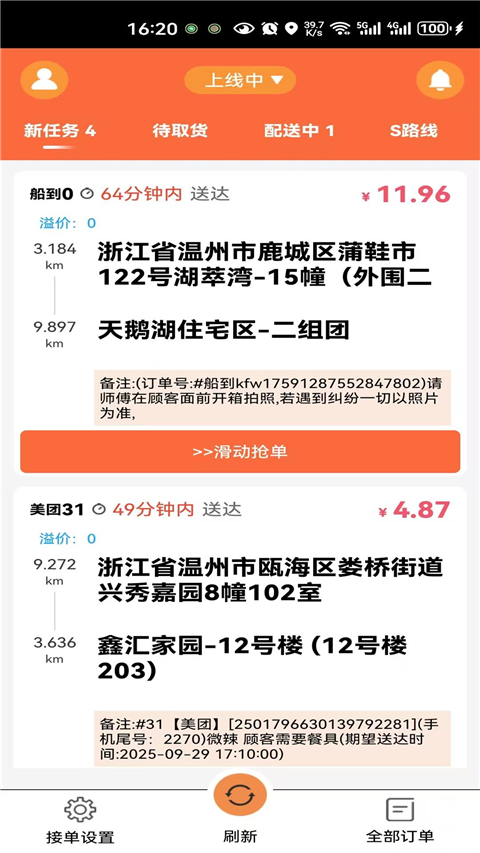 获取订单详细信息,点击接单即可迅速进行接单。
