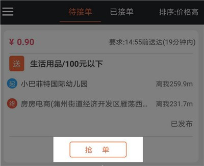1、来单时,点击抢单。