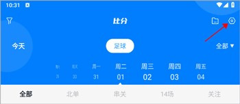 1、打开白鲸体育软件注册登录后,点击右上角的设置图标。