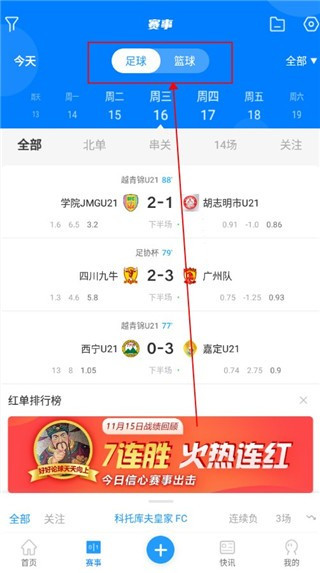2、在这里大家可以清楚的观看到足球和篮球的比赛情况