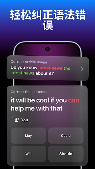 • 即时纠错:文法 / 字彙 / 发音