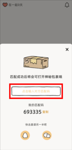 3、同样,也可以将自己的匹配码复制发送给对方,让对方进行匹配,还能通过qq和微信区邀请另一半。