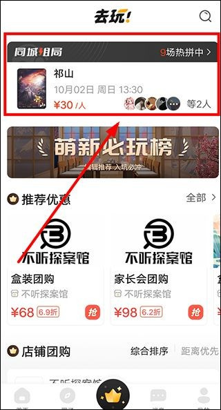 5、如果不愿意组局,也可以选择【同城组局】页面内,参与其他人发起的剧本杀组局。