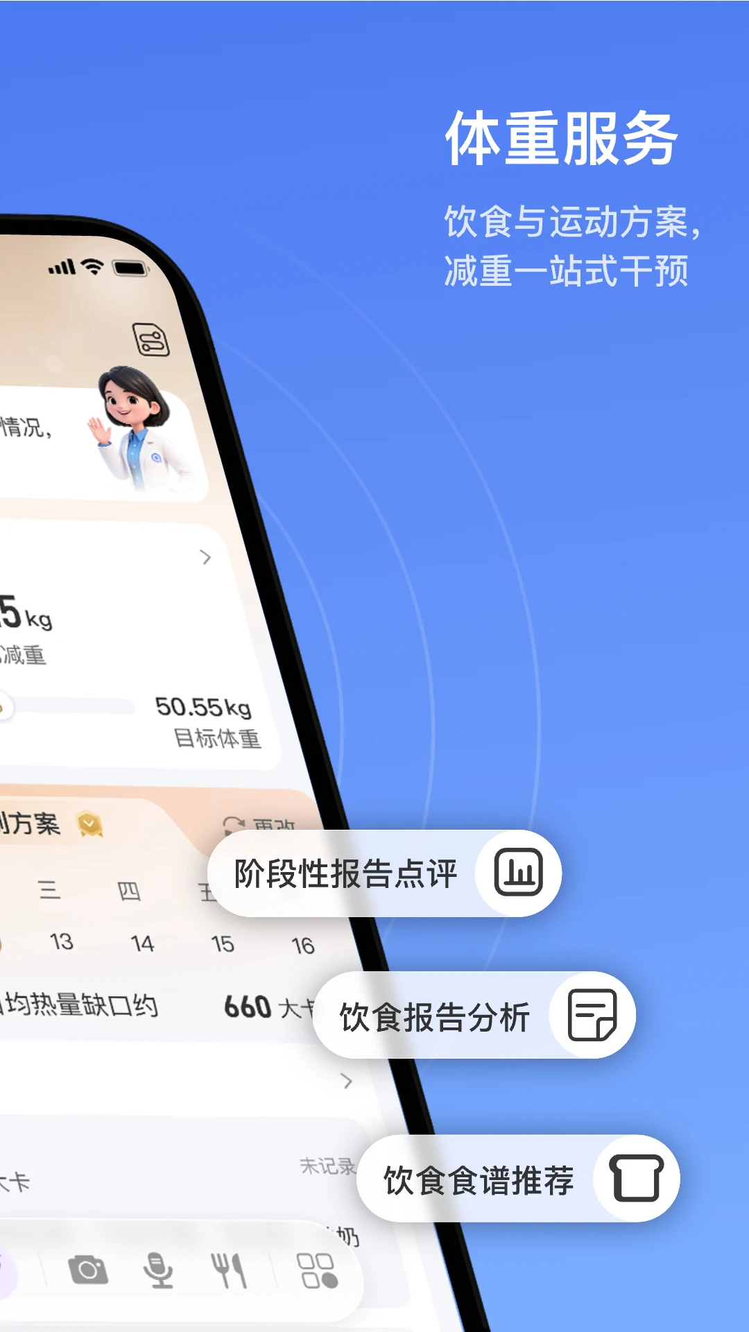 1、轻牛健康为您专设健康模型,跟踪体重、围度等多维数据,持续优化减肥方案。