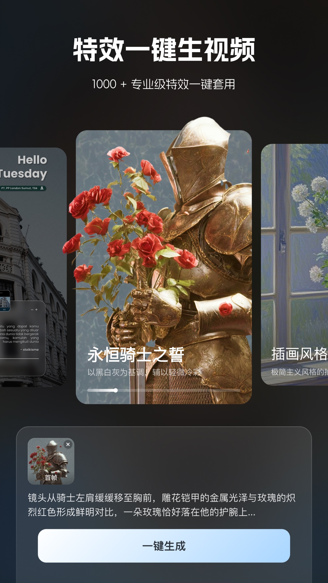 1000+专业级特效一键套用:电影级滤镜、动态转场、氛围光效等,小白也能轻松做出“专业级大片”。