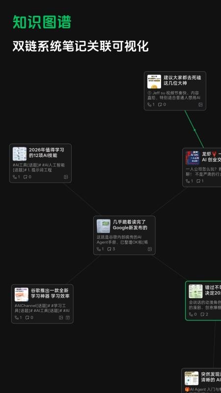 2.双向链接与知识图谱:通过追记或插入笔记形成双向链接,直观查看知识关联图谱。