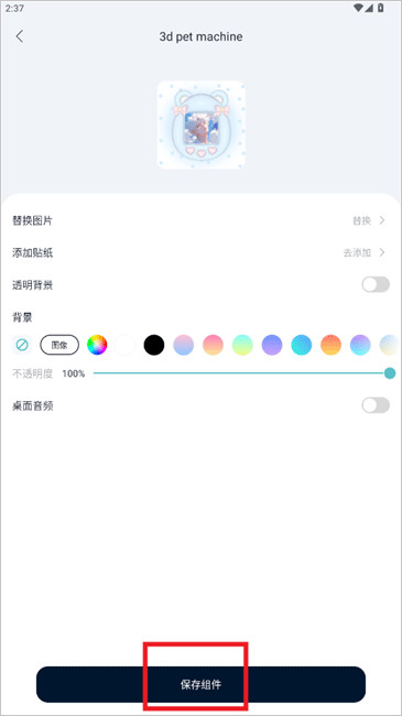 2、设置小组件样式,完成后,点击保存组件