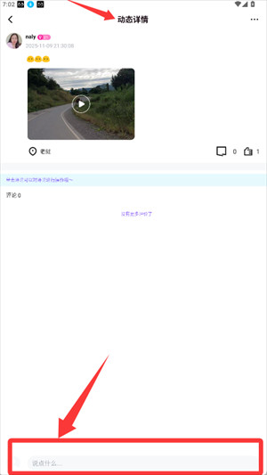3、在动态详情页底部输入框内,可直接发表评论参与交流。