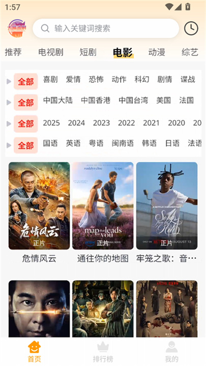 1、在大喵追剧软件首页下,我们不仅能够看到一系列推荐电影、电视剧而且更是可以直接在线搜索。
