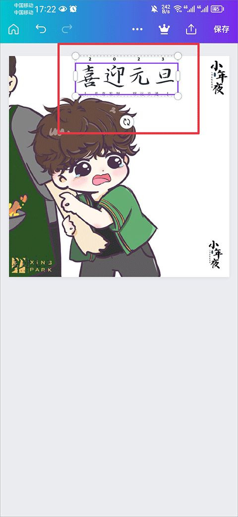 3、点击后就可以在图片中看到该文字了,然后点击文字可以调节大小和移动位置。