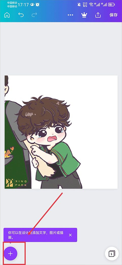 1、图片创建完成后,点击canva设计左下角+号。