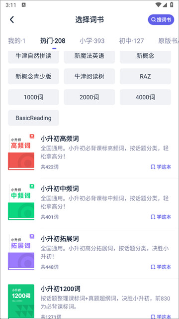 1、万词王wantwords里更新的单词词库也是非常多的,能满足多种不同的年级的学生去学单词;