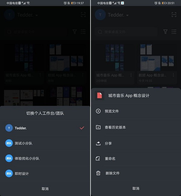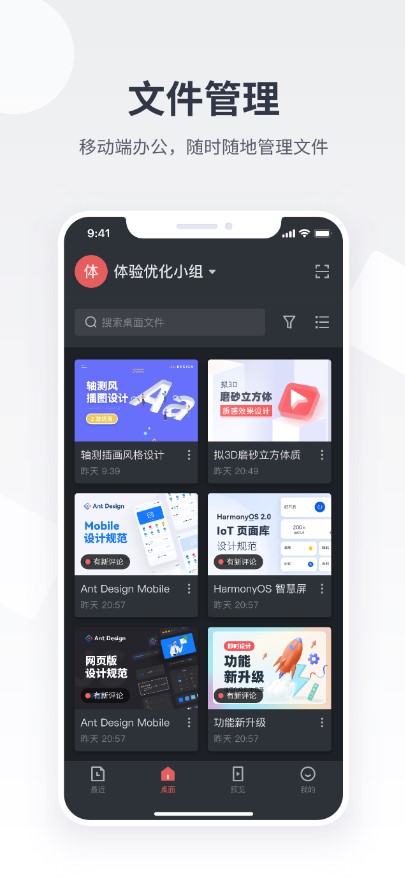 如果团队成员出门在外,临时需要查看或者分享某个项目恰好身边又没有电脑时,也可以通过 App 来实现个人及团队项目的各种文件管理相关操作。