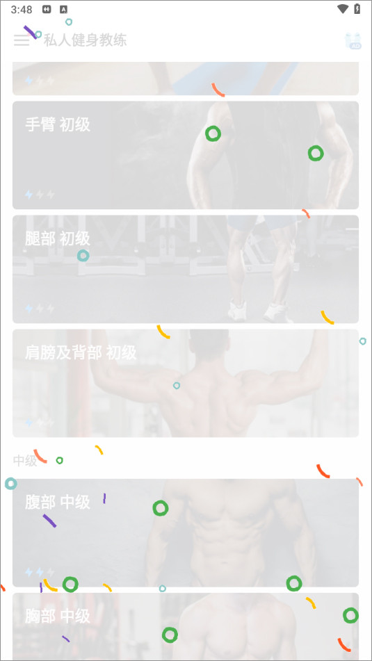 1、进入私人健身教练后,根据自己的情况来学习,刚开始先从初级开始
