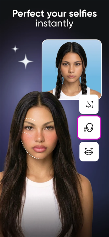 拥有丰富的滤镜和时尚特效、替换背景去除杂物,拥有200多种设计字体和创意文字,支持换发色、美妆贴纸、模煳背景、照片翻转和裁剪等强大的美颜功能!