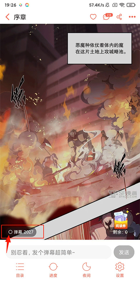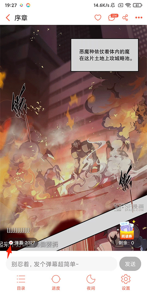 3、轻按漫画页面,在弹出的功能列表中取消勾选左下角的【【弹幕】即可关闭;