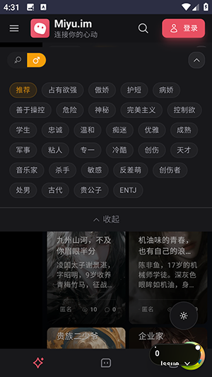 Miyu内准备了多种不同风格的虚拟角色,每个角色在性格、语气和互动方式上都有明显区别。用户可以先按喜好挑选更顺眼的人设开始交流,再慢慢判断哪一类角色更适合长期聊天。