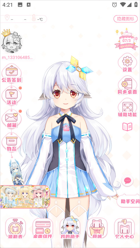兽耳桌面纯净版最新版本是个以二次元风格为核心的桌面美化应用,用户可以在手机桌面上添加个性化的兽耳角色,实现互动式的陪伴体验。兽耳桌面纯净版角色支持语音唤醒、情绪反馈以及换装等多种设定,增强了整体的沉浸感与趣味性。兽耳桌面纯净版还集成了天气提醒、待办事项和时间提示等实用工具,在可爱风格与日常效率之间取得平衡。