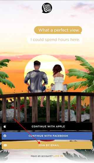 1、下载后打开进入imvu中文版,点击英文join by email,使用邮箱注册