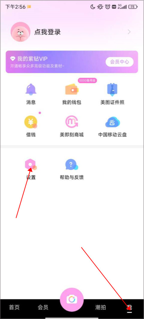 1、打开beautycam美颜相机,点击右下角的“我”,点击“设置”。