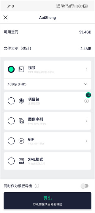 导出任何人都可以使用am凉笙剪辑编辑的视频、GIF或项目包。