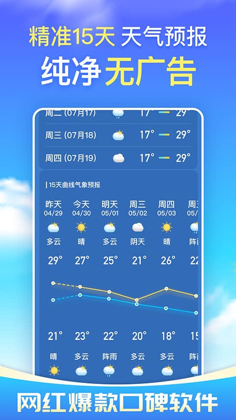 更云天气提供下周的实时天气、天气趋势,以及温度、湿度、风速等详细信息,帮助用户充分了解天气状况。